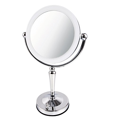 - COMPREHENSIVE – This dual-sided 360° swivel design luxury mirror features 1x10x magnification. 1x for a great view of your entire face all at once, and 10x for precision, because every detail counts (7.5” diameter).