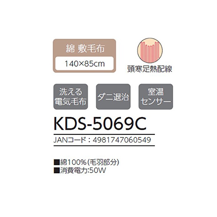 원본상품명:コイズミ 電敷毛布 綿毛布 140×85cm KDS-5069C