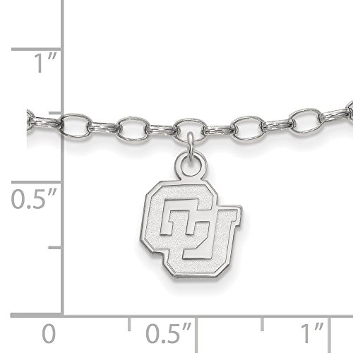 Solid 925 Sterling Silver University of Colorado Anklet 9" - with Secure Lobster Lock Clasp (2.5mm)
