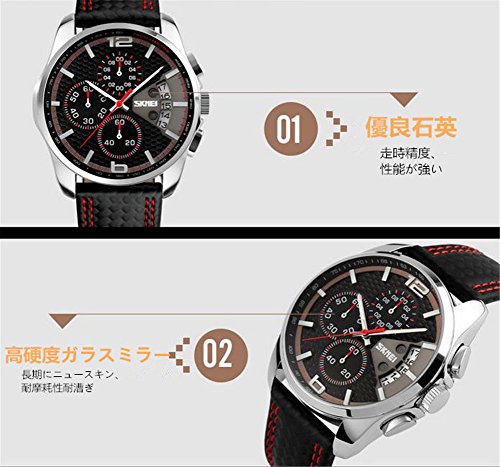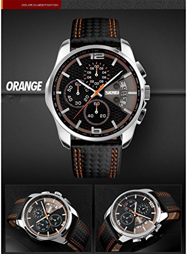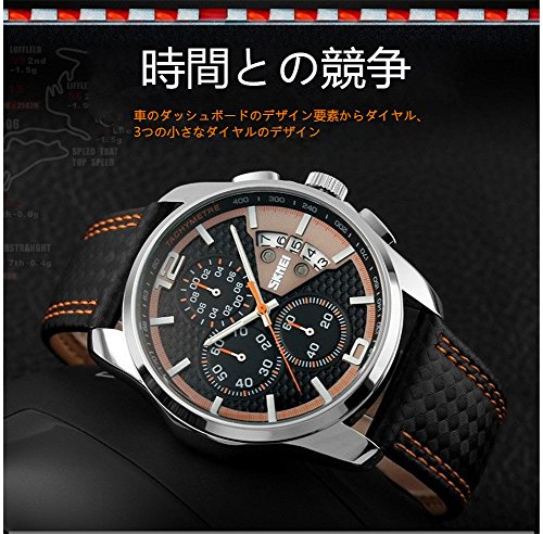 ZYCC 남성의 호화인 가죽의 손목시계 쿼츠 방수 손목시계 크로노그래프 오렌지