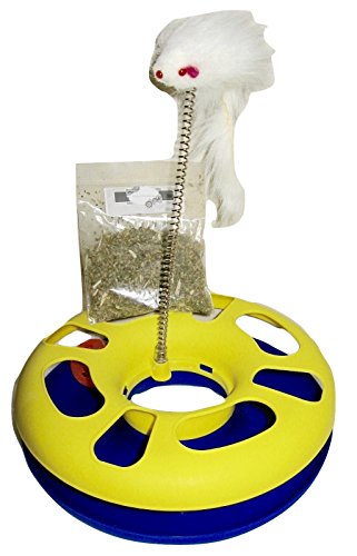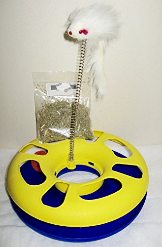 -. Binding : Misc. -. Brand : Finds and Furnishings -. Color : Yellow, Blue, White -. EAN : 4893013180229 -. Feature : 2 piece Cat Toy and Organic Catnip Bundle / Pre-assembled plastic round reach-through track with rolling ball and a sP.R.Ing-mounted faux fur mouse with tail. / Resealable bag of Organic Catnip labelled by Finds and Furnishings / Hours of Play ahead for cats or kittens. Glides easily across floors and carpets. / Premium Organic flowers and leaf catnip packaged in a resealable plastic bag for freshness. -. Label : Cat Toy -. Manufacturer : Cat Toy -. NumberOfItems : 1 -. PackageQuantity : 1 -. ProductGroup : Pet Products -. ProductTypeName : PET_SUPPLIES -. Publisher : Cat Toy -. Studio : Cat Toy -. Title : Cat Toy Bundle with Organic Catnip, Swat the Mouse and Hit the Ball, Completely Assembled and Ready to Play