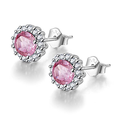 COLORFEY Pink Tourmaline Natural Gemstone Round S925 Sterling Silver Stone Earring Studs for Women Girls COLORFEY JEWELLERY always strving for provide you Natural Genuine Gemstones.