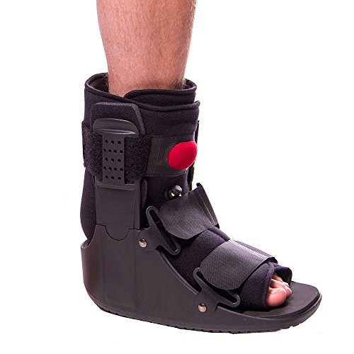 -. Feature : Pneumatic walker boot provides compression and support to the ankle and foot so you can walk while healing from injuries like stress fractures, minor ankle breaks and sprains, lisfranc injuries, diabetic ulcers and post-bunionectomy / Breathable fit due to the open toe design of the Cam walker boot / Arching rocker design to promote a smooth energy conserving walk / Velcro closures located on splint for a more customized fit / Sizes XS - L, measure U.S. shoe size