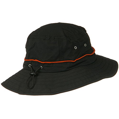 Binding : Apparel Product Description Be satisfied in wearing our Black UV 50 Orange Piping Talson Sun Bucket Hat for those adventurous individuals who are seeking ultimate protection while out camping, fishing, hunting or exploring. This UV 50 sun hat fully protects you from harmful sun rays by providing excellent UV sun protection for your whole head. This black bucket hat sports orange stripe around the crown and orange color under the brim for accented look and style. 2 small air holes are featured on both sides of hat, allowing your head to be well circulated all the time during your activities. This comfortable and brethable fabric of hat helps for easy body moisture absorption to keep your head in extra cool condition for those hot outdoor expeditions. Back of hat is fitted with inner size adjustable string to find perfect and secure fit for your head. This UV 50 sun bucket hat is excellent outdoor hat for men and women that works great for moisture management for your head. 0