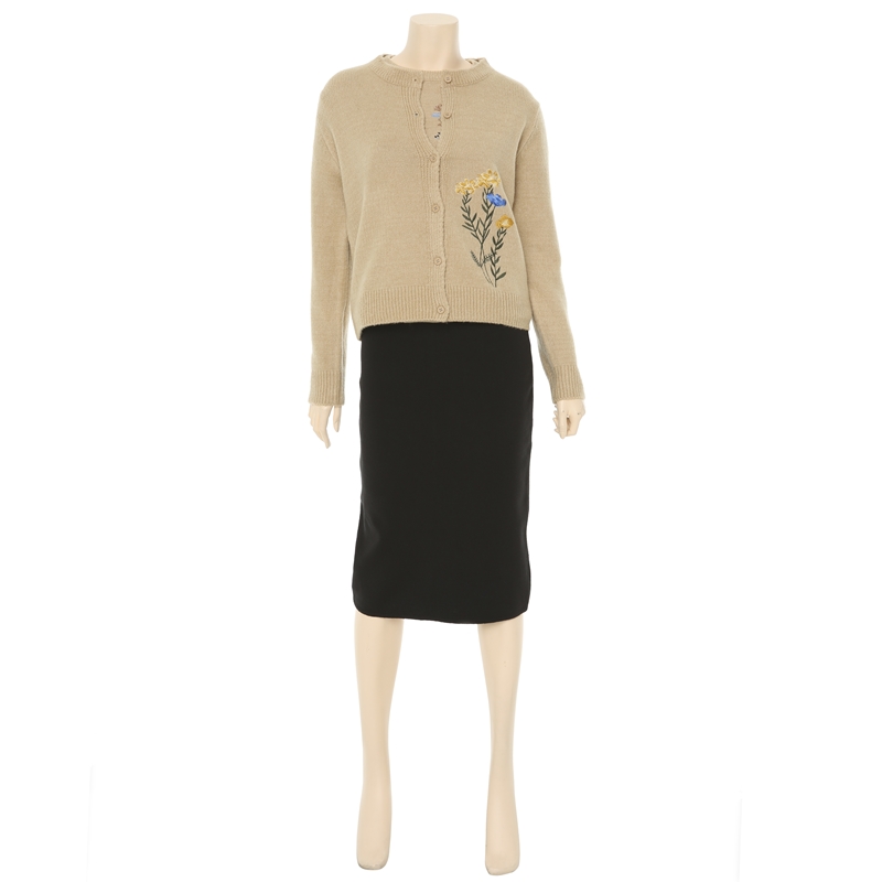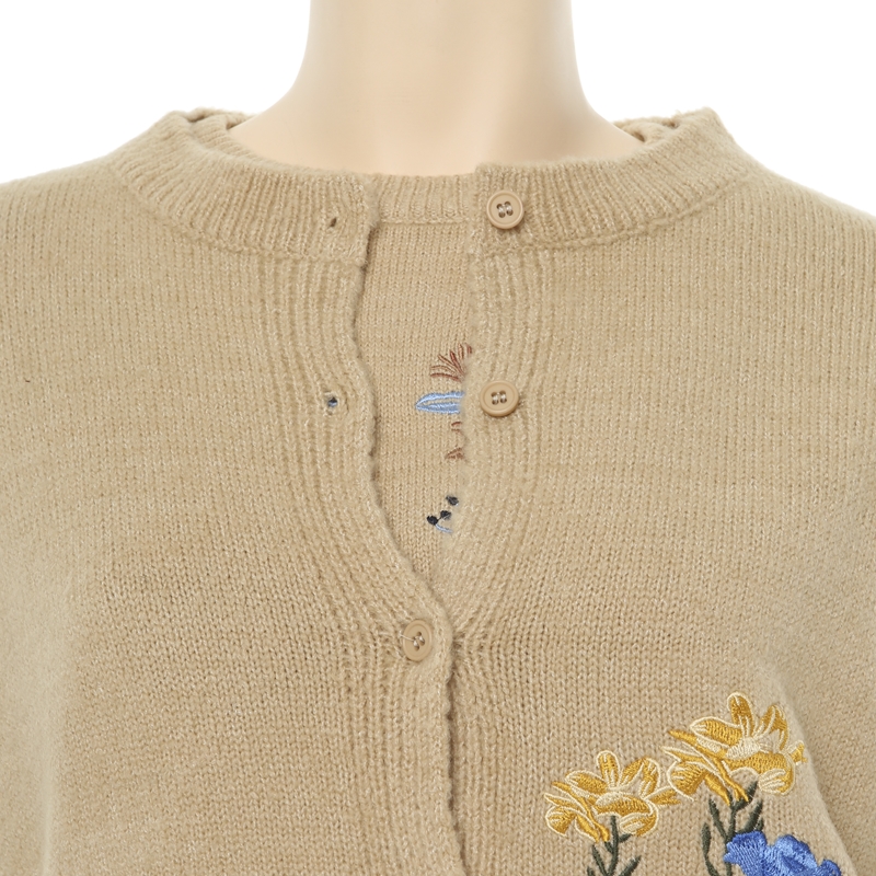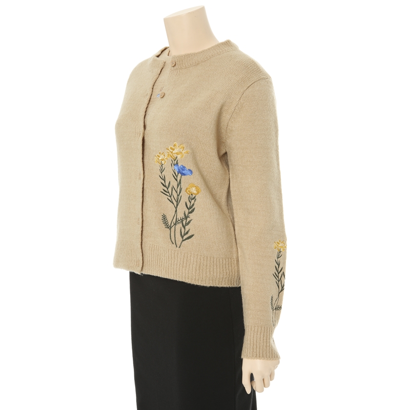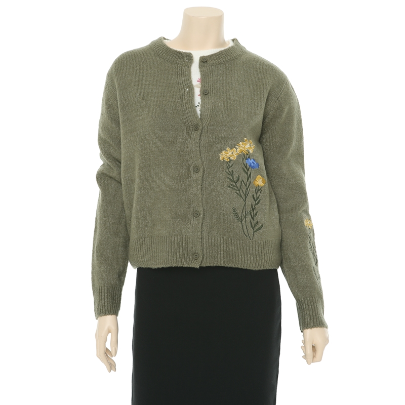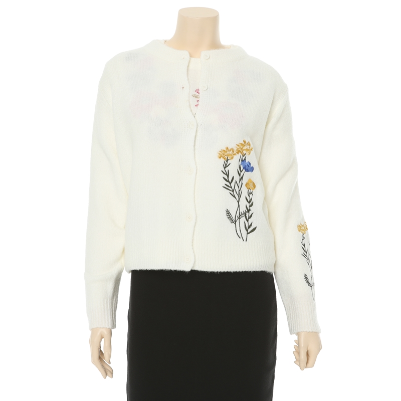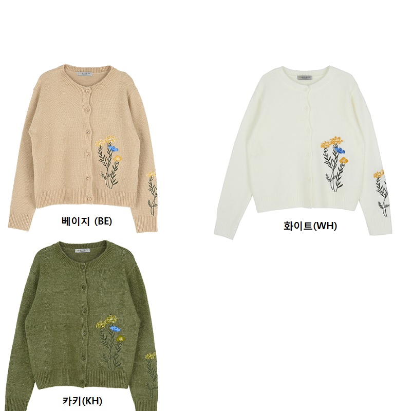 프론트와 소매에 플라워 자수로 포인트를 준 니트 입니다.