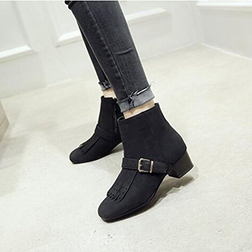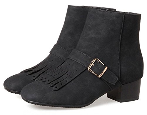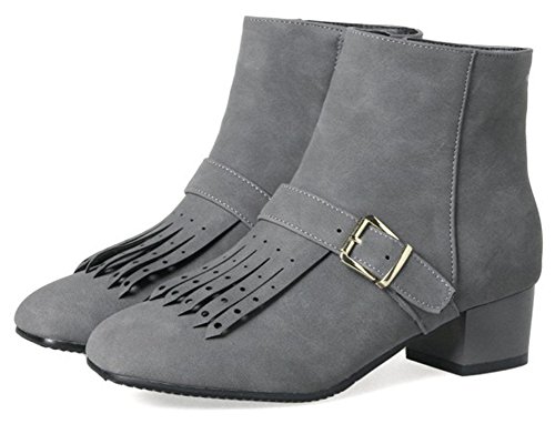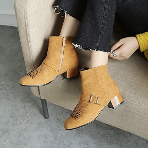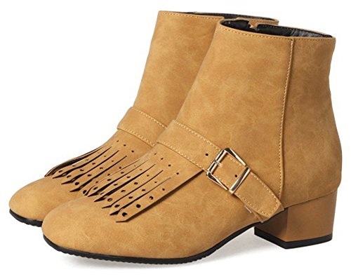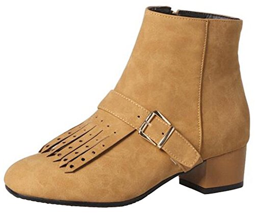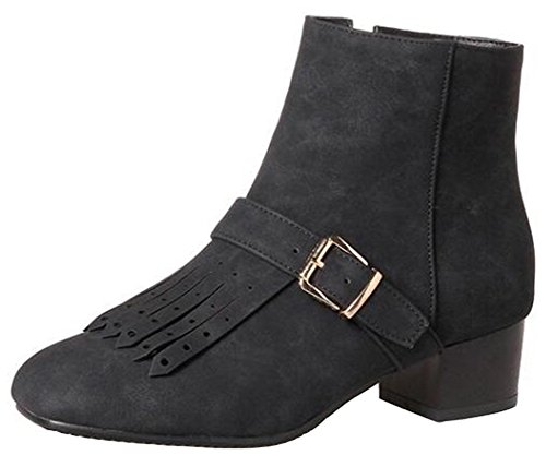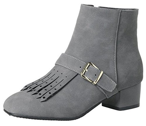 (Mofri)/Women's/Boots/DIRECT FROM USA/Mofri Women's Stylish Fringes Buckle Belt Side Zipper Short Boots Square Toe Low Block Heel Ank...