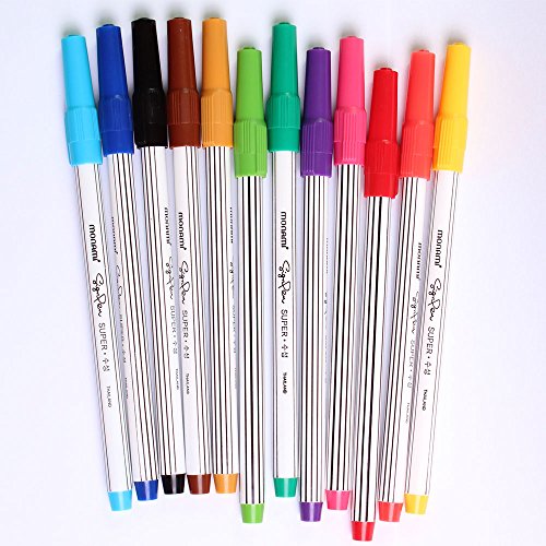 Monami Felt Tip Sign Pen Super Marker for Art Drawing Coloring Decorating - 12 Color Set