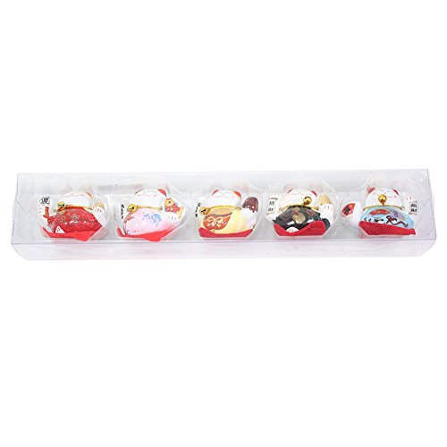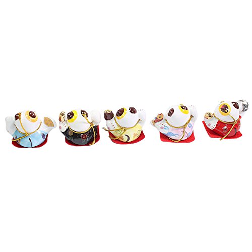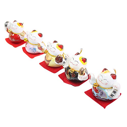 Set of 5 Japanese Maneki Neko Lucky Cat Figurines Cute Smiley Waving Upright Lucky Fortune Cat US Seller
