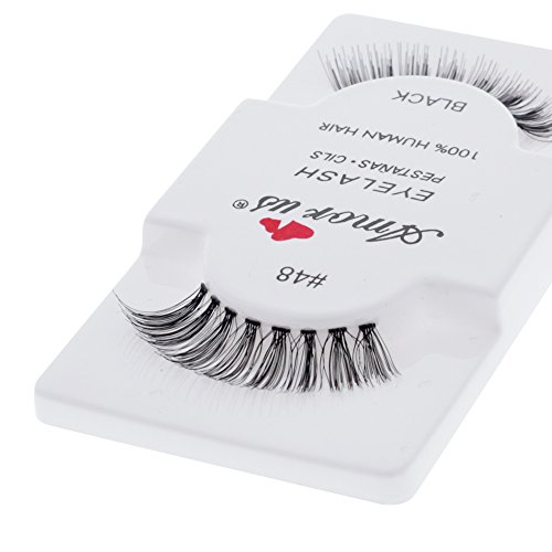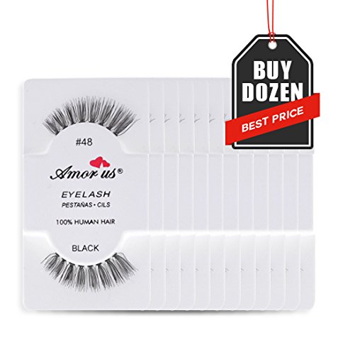 Amorus 12 Pairs Multipack #48 False Eyelashes Dozen Set 100% Natural Hair Black Handmade Comfortable Reusable Strip Fake Lashes Pack