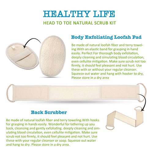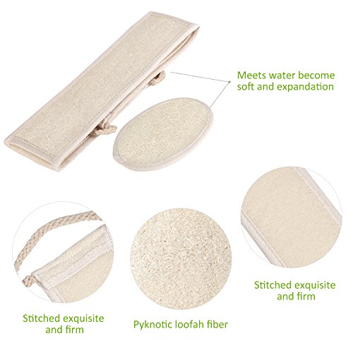 - 【Clean More Efficient with 1+2 Loofah Spa Suit】 To clean the body skin is more important than you think, many people are not using any scrabber to clean the body especially the back in the bath and shower because they don't have the information about this product. Loofah back scrabber and bath sponge pad are the best gift for you, your loves and family.