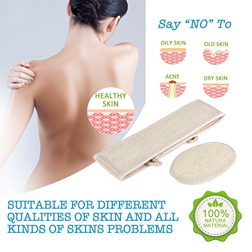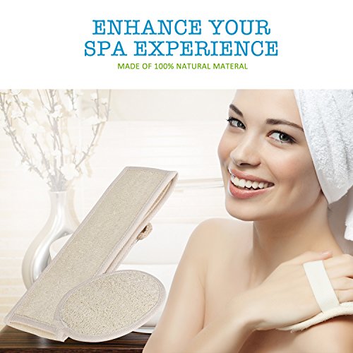 Gooldee Natural Home Spa Kit, 2x Long Size Back Scrubber and 2x Loofah sponge Pad, Exfoliation and Skin Care for Spa, Bath and Shower, For men and...
