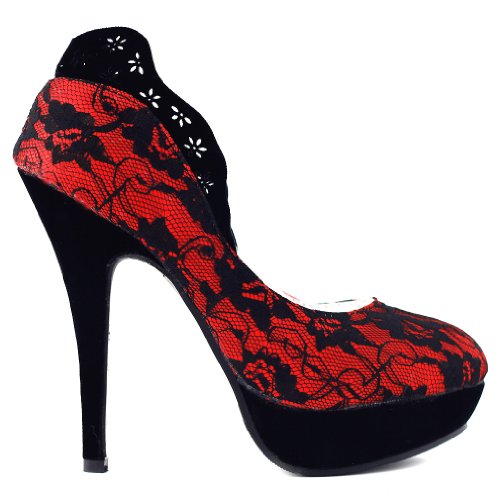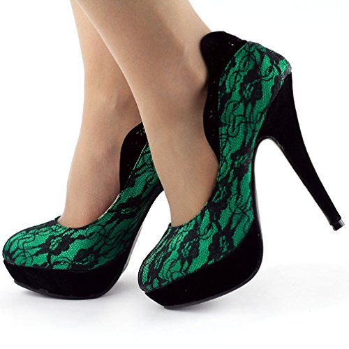 -. Binding : Apparel -. Brand : Show Story -. Department : womens -. Feature : Manmade sole / platform with stiletto heel / Lightly padded insole / Please Use the Sizing Chart Image on the Left. / Sometimes, our estimated size is not the same as the labeled size due to large or small make of an item. -. Model : LF30443 -. ProductGroup : Shoes -. ProductTypeName : SHOES -. Title : Show Story Sexy Two Tone Closed-Toe Lace Platform High Heel Stiletto Pumps,LF30443