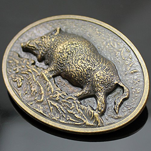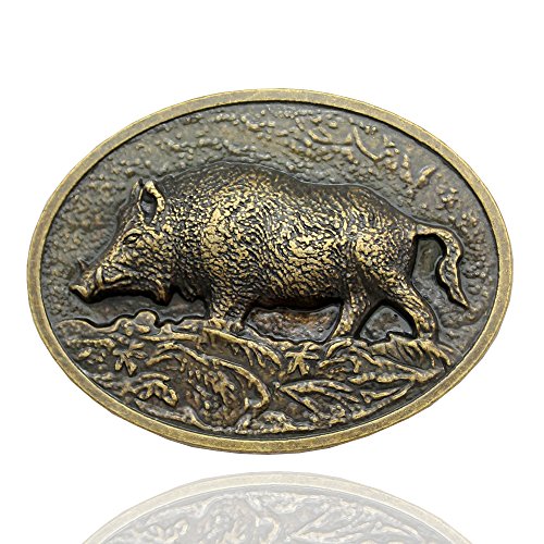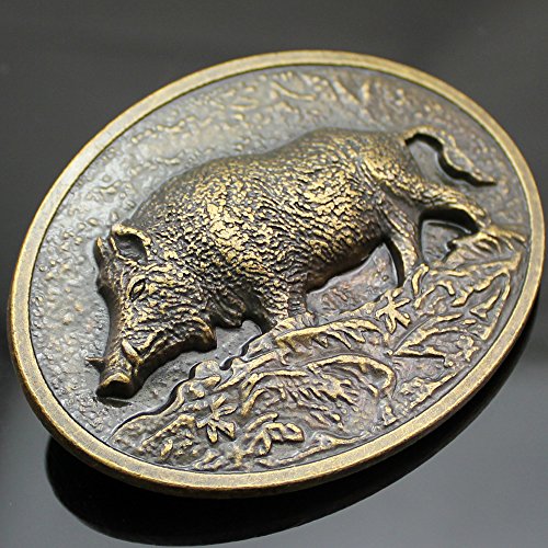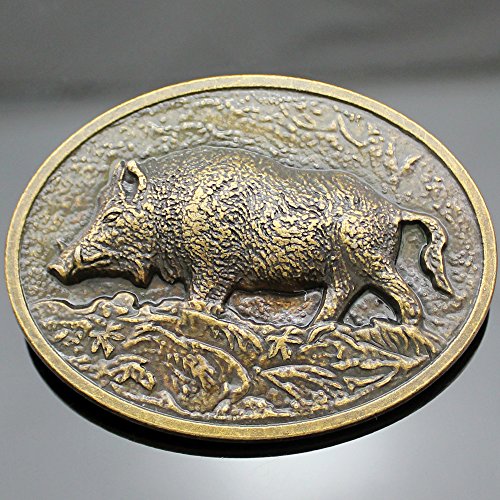 Q&Q Fashion Men Western Antique Gold Wild Boar Pig Hog Animal Hunt Tractor Farm Belt BuckleArt Nouveau style ,Art Deco style ,Baroque,Fancy Dress style and so onit`s for occasions like Party,Fashion Show,Photo,Wedding,Bridal,Prom.and so onFeature