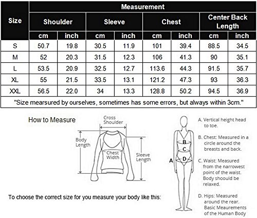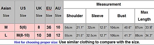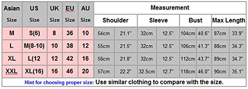 Binding : Apparel Product Description TYPE 1: 2 Sizes Available: Asian Size M ---US Size S(6) ---Shoulder 21.1 inch ---Sleeve 12.5 inch ---Bust 40.6 inch ---Max Length 33.9 inch Asian Size L ---US Size M(8-10) ---Shoulder 21.5 inch ---Sleeve 12.7 inch ---Bust 41.3 inch ---Max Length 34.3 inch Asian Size XL ---US Size M(12) ---Shoulder 21.8inch ---Sleeve 12.5inch ---Bust 43.7inch ---Max Length 34.7inch Asian Size XXL ---US Size L(16) ---Shoulder 22.2inch ---Sleeve 12.7inch ---Bust 46.0inch ---Max Length 35.1inch TYPE 2: Asian Size S ---US Size XS(4) ---Shoulder 15.0 inch ---Sleeve 19.3 inch ---Length 38.5 inch Asian Size M ---US Size S(6) ---Shoulder 15.4 inch ---Sleeve 19.7 inch ---Length 38.9 inch Asian Size L ---US Size M(8-10) ---Shoulder 15.8 inch ---Sleeve 20.1 inch ---Length 39.3 inch