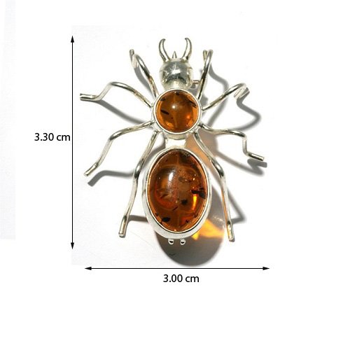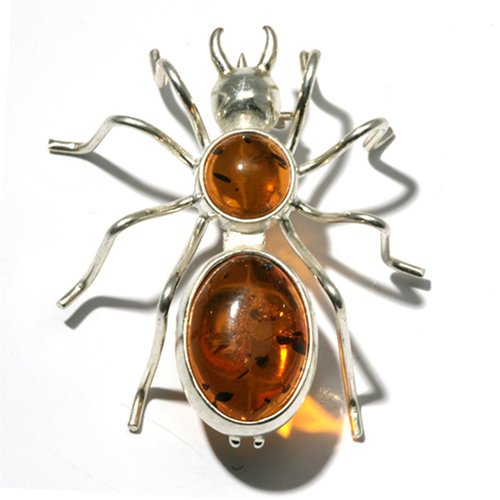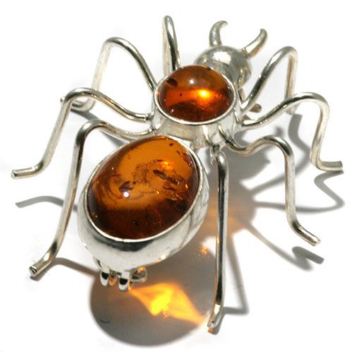 Honey Amber Sterling Silver Spider Pin