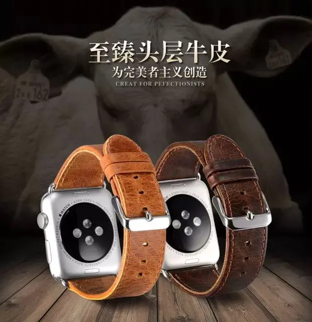 | [해외]레트로 스타일의 가죽 스트랩 시계 iWatch 42 미리메터 38 미리메터 빈티지 진짜 가죽 시계 밴드 애플 시리즈 2 |
