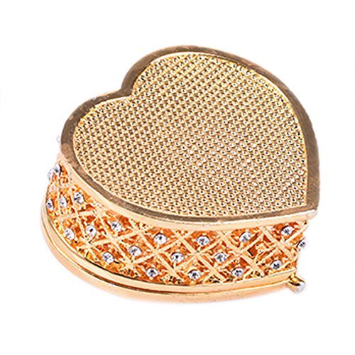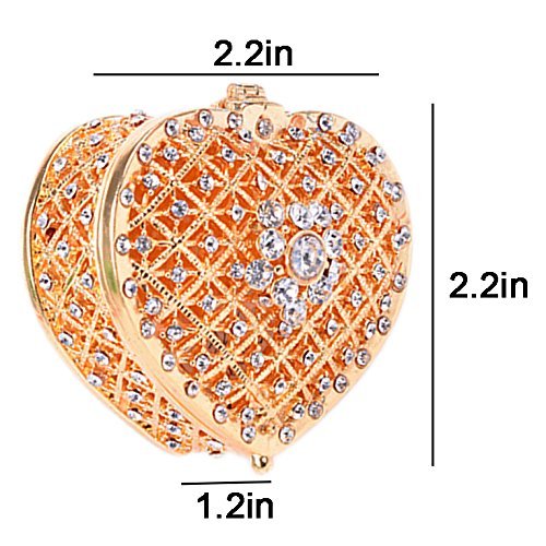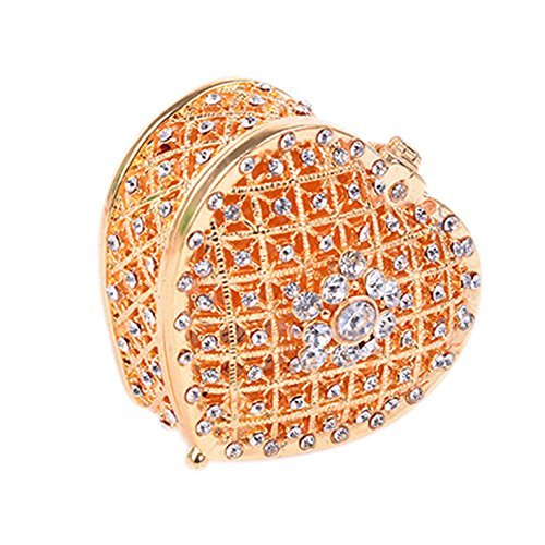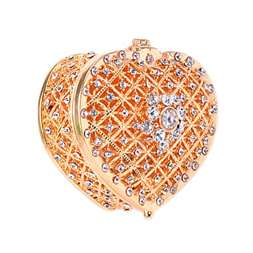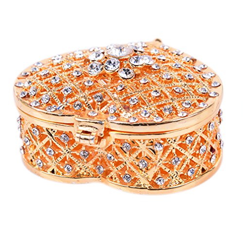 Women Cute Jewelry Box Heart Hollow with Shiny Diamond Small Jewelry Holder Case(Golden)