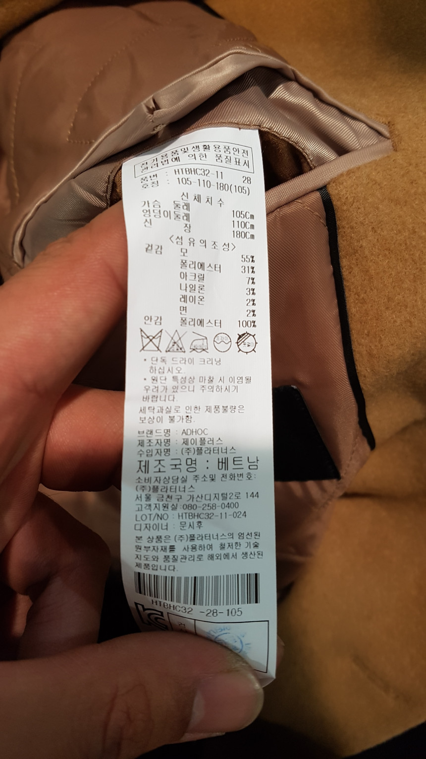 안감 누빔 싱글코트