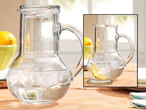 Perfect for storing and serving your drink for one, the lid of this carafe doubles as a tumbler, resulting in a clean and sophisticated look that also reduces clutter and unnecessary refilling trips. Both pieces are hand crafted from glass for the finest quality and elegant one of a kind design. The classically designed set is great for bringing water to your nightstand, but the elegant design can also be used in court rooms, conferences and as individual serving vessels for dinner guests.Feature