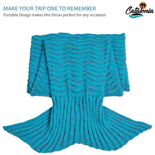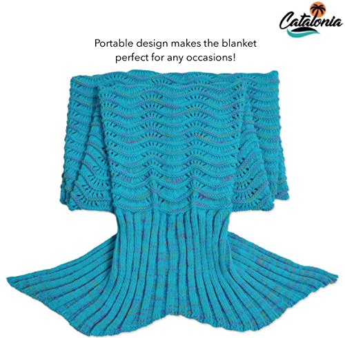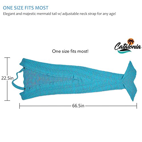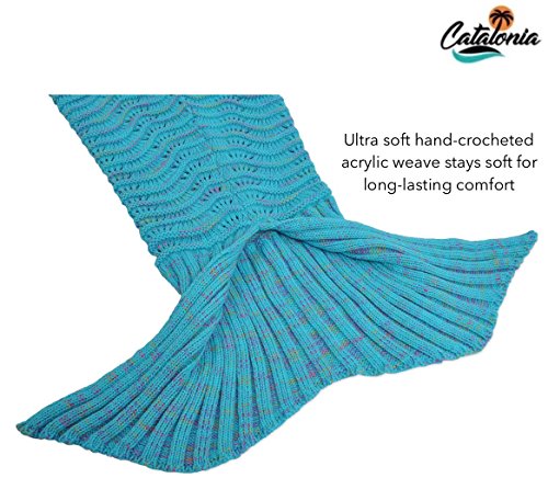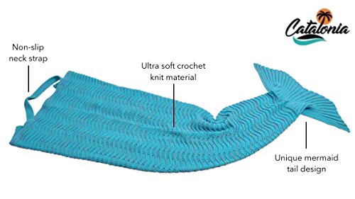 Studio : Catalonia Publisher : Catalonia Product Description Catalonia premium adult hand crocheted mermaid tail knitted blanket with anti-slip neck strap made of acrylic fibers provide you a comfortable and warm when sleeping in it. Adorable mermaid blanket with tail, like a sleeping bag ideal for fun and comfy. Make you childhood dreams come true. Prefect gift for family, Christmas gift. Ultra-soft touch, non-irritating and skin-friendly for your skin, stay warm and cozy all year. Great for playing at home, Sleepovers, Camping, Lounging, sleepovers, around the campfire, watching family movies or anywhere! 1CTMM100BL 0