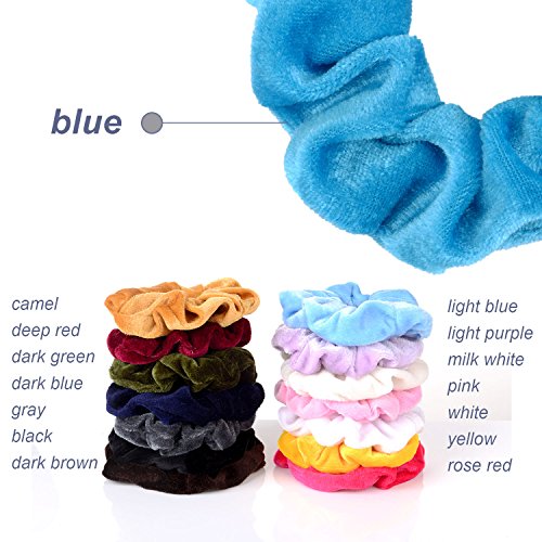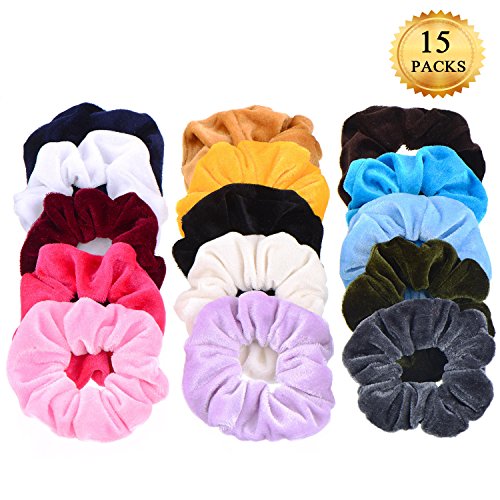 15 Pack Hair Scrunchies Whaline Bobbles Elastic Velvet Colorful Scrunchy Hair Bands Ties, 15 Colors