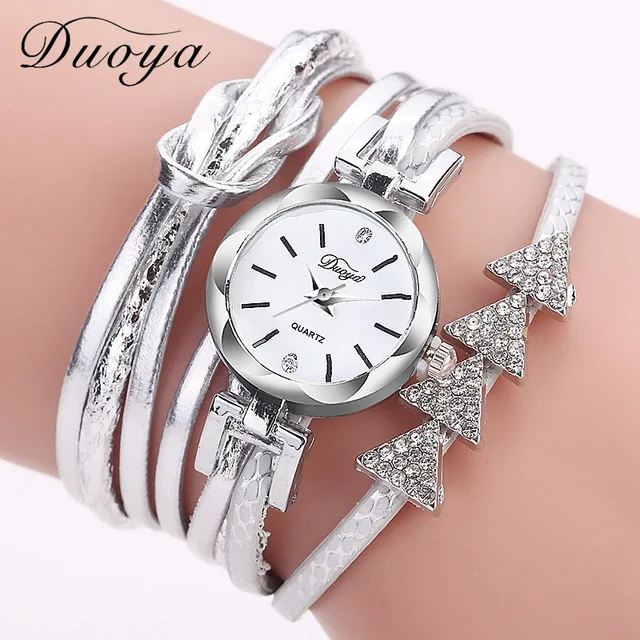 | [해외] Duoya 유명 브랜드 여성 시계 팔찌 실버 여성 손목 삼각형 다이아몬드 패션 캐주얼 여성 드레스 쿼츠 시계 |