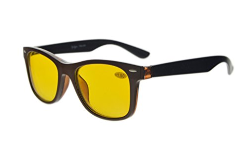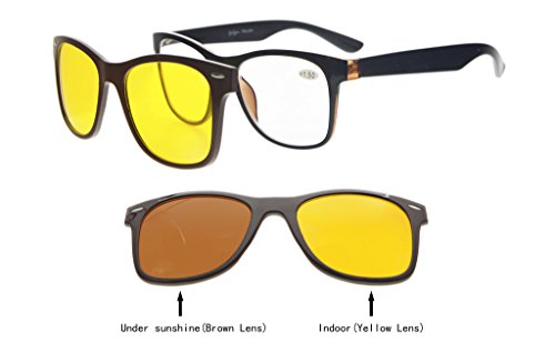 Eyekepper Reading Glasses With Polarized Anti Blue Glare Photochromic Lens Sun Clip Large And Heavy (Black/Brown, +3.0)