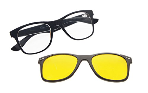 READING GLASSES WITH ANTI BLUE GLARE CLIP ONS-Included a microfiber cloth and hard zipper case.FDA Registered Reading Glasses and Eyewear, Accord with ANSI Z80.3-2010, Accord with BS EN ISO 12312-1:2013 and EN14139:2010, Accord with AS/NZS 1067:2009, Top quality plastic frame, Photochromic POLARIZED lenses, 70% anti-blue light.
