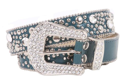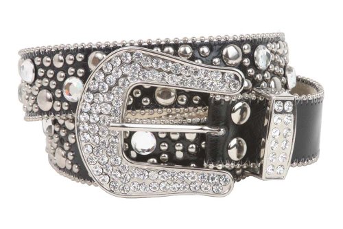 -. Feature : Rhinestone & rivet Studs hardware / Snap on, interchangeable western rhinestone buckle / Tiny metal ball chain edges / Removable, interchangeable western rhinestone buckle with snap on feature which allows you to switch