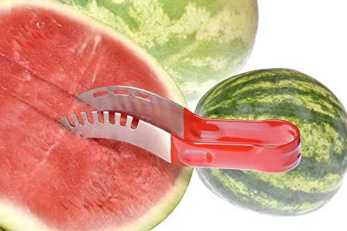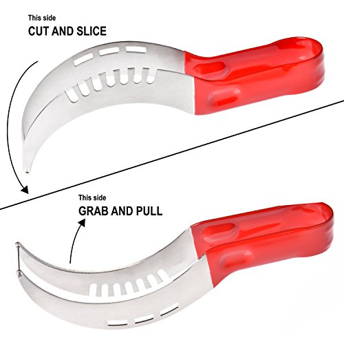 - EASY-TO-USE: Cut & Slice, Grab & Pull! Get the most out of your juicy watermelon in seconds, with swift, short moves! Scoop and serve even melon slices, each and every time, pain-free, thanks to our gadget’s non-slip, reinforced high-grade rubber handles and finger indents!