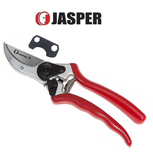 -. Brand : Jasper -. EAN : 0744750985865 -. Feature : Sharp blade is made of SK5 high carbon steel. / Strong aluminum drop forged handle with PVC grips for professional work. / Adjustable Lock not only for large and small handle, but also for blade open size. / Including an Adjustment Key / Aluminum Drop Forged Handle, non-slip PVC grips. -. Label : Unknown -. Manufacturer : Unknown -. ProductGroup : Lawn & Patio -. ProductTypeName : OUTDOOR_LIVING -. Publisher : Unknown -. Studio : Unknown -. Title : Jasper 8 1/2" Solid Aluminum Forged Bypass Pruner Professional Classic Design -. UPC : 744750985865