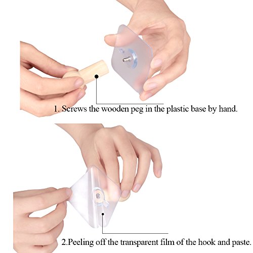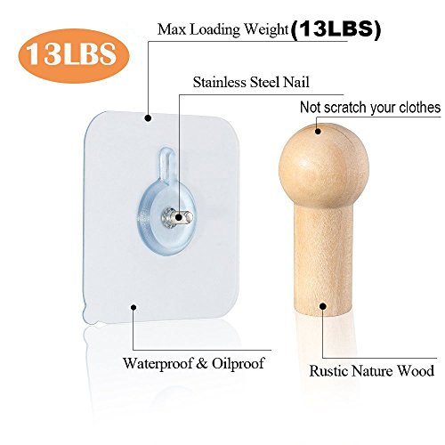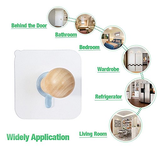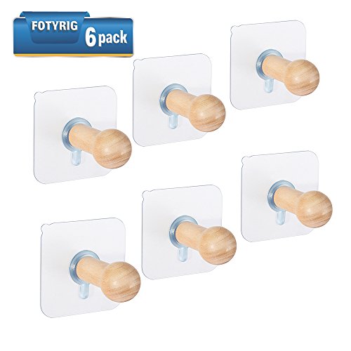 Studio : FOTYRIG Publisher : FOTYRIG Product Description FOTYRIG Adhesive Wall Hooks 13 Pounds (Max) Wooden Pegs Hat Hooks Storage Wall Mounted Coat Hanging Hook No Scratch No Drills No Tools for Coats Towels Hats Keys Robes On Door Wardrobe Closet -6 Pack Advantage over Others: Applicable to the flat surface such as wood surface, stainless steel,metal surface, plastic surface, glass surface, tile and so on (Don't install it on painted ?walls,lime wall,wallpaper with textures.otherwise it might damage your paint). More heavy duty.Max weight capacity is up to 15lb/7kg per hook. Larger adhesive base for firm sticky function. Easy to stick on and remove,can be moved at wish.Nail Free,No Trace,No Damage! Reusable and durable,waterproof and oilproof,high and low temperature resistant Great for using on doors, closet, hallways, foyers, entryways, mudrooms, offices, garages, kitchens, and bedrooms . Installation Tips: Do keep surface dry and clean first before sticking on. Peel off the cover.Make sure the position to stick on one time. Squeeze the air out from centre to side to make the hook stick on the wall completely. HANG ITEMS 12 HOURS LATER for BETTER and DURABLE EFFECT. Tips to Remove and Storage: Gently uncover one edge of the hook.Slowly tear down the sticky hook film vertically. Do not pull the hook directly to remove. Stick the cover on the hook base for storage. Size:2.36"(L) * 2.36"(W) Material:PVC Stainless Steel Package:6pcs Wall Hooks 100% Quality and Money Back Gurantee(Damage caused by non-artificial).