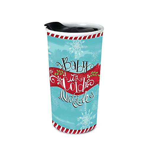 LANG - 15 oz Ceramic Traveler - "Baby Its Cold" Artwork by Lori Lynn Simms - Double Walled Cool Touch - Slider Lid