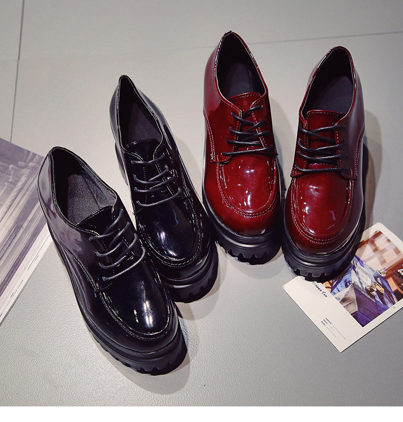 英伦高跟小皮鞋女秋冬季新款漆皮厚底松糕休闲鞋学院风女鞋子