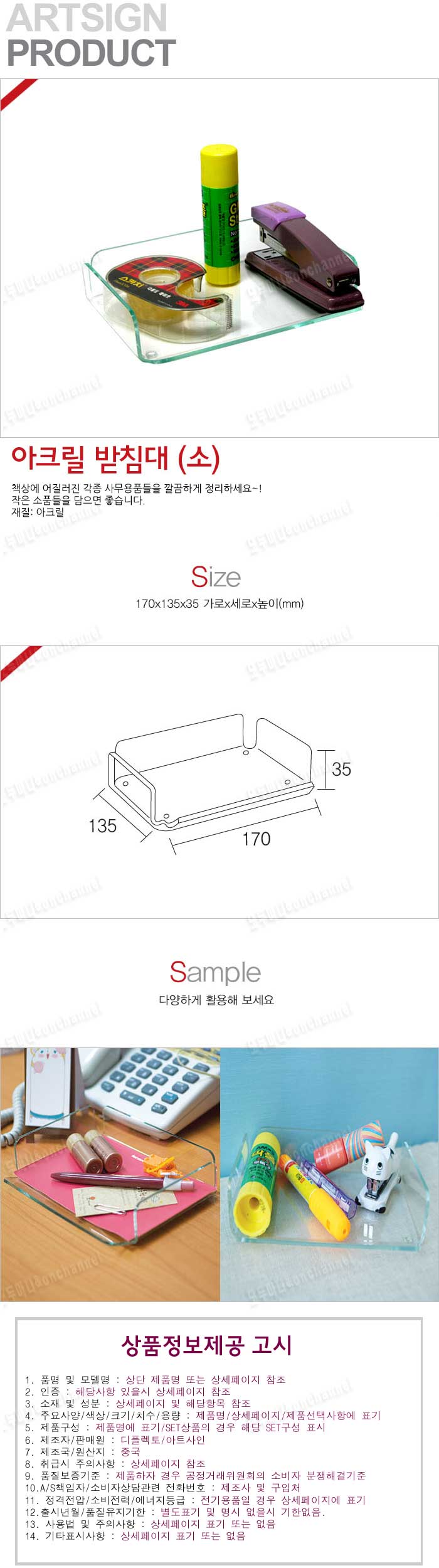 - 품명 및 모델명아크릴 받침대(소/170x135mm)