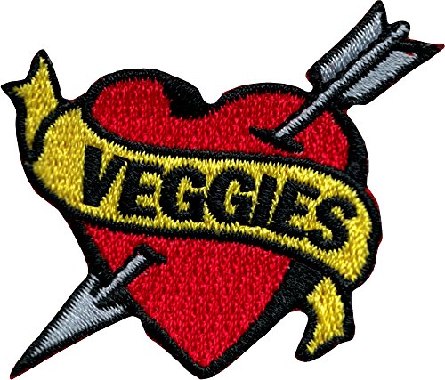Vegetable Lover "Veggies" Wounded Heart Arrow Patch Vegetarian Iron-On Applique