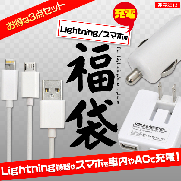 3点セットのお得なLightning/スマホ充電福袋!