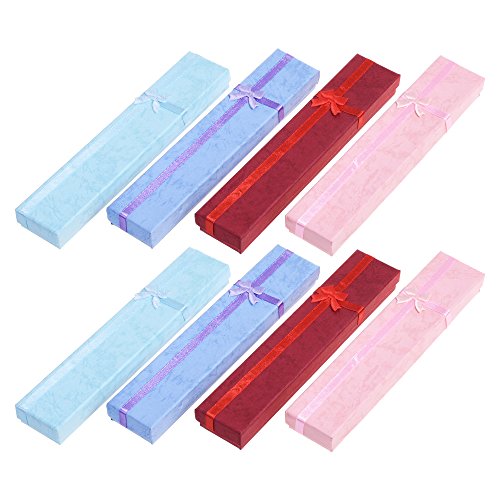 BCP 8pcs 1.5x8x.075” Assorted Color Small Hard Gift Box for Necklace Jewelry