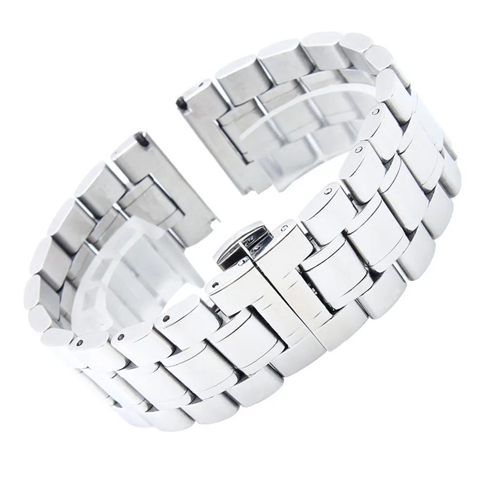 [해외]높은 품질 18/19/20/22/24/26/28 미리메터 폭 실버 색상 스테인레스 스틸 시계 스트랩 비즈니스 스마트 시계
