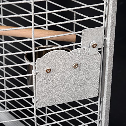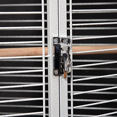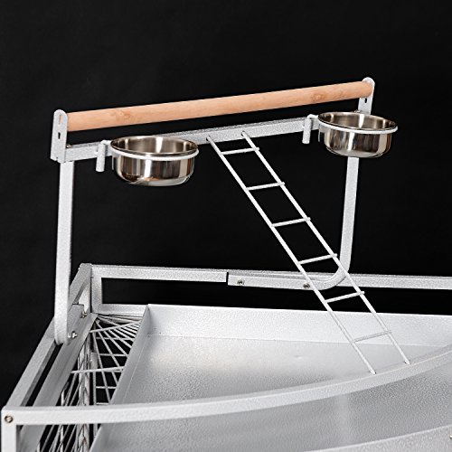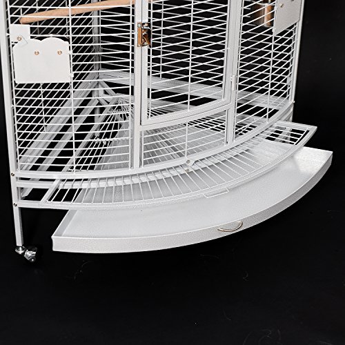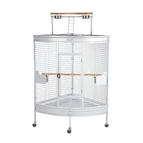 -. Binding : Misc. -. Brand : Pawhut -. Feature : ✔ SPACE SAVING: Pawhut's large corner cage stand with wheels saves space while offering generous living space for your birds. / ✔ DURABLE BUILT: Constructed with durable wrought iron enhanced by a non-toxic powder-coated finish, our cage is tough enough to withstand biting and pecking while at the same time being highly resistant to rust and bacterial buildup. / ✔ FEEDING CUPS/PERCHES: Equipped with 4 stainless steel feeding cups (2 with feeder doors) and 2 wood perches (1 on the top and 1 interior) for your convenience. / ✔ PLAYTOP DESIGN: Includes a playtop design with ladder, perch and two feedings cups with a removable debris tray for easy cleaning and to add to your birds living area. / Overall Dimensions: 38"L x 27"W x 59"H -. Label : Pawhut -. Manufacturer : Pawhut -. PackageQuantity : 1 -. ProductGroup : Pet Products -. ProductTypeName : PET_SUPPLIES -. Publisher : Pawhut -. Studio : Pawhut -. Title : Pawhut Large Corner Playtop Bird Cage w/ Stand and Wheels - 38" x 27" x 59"