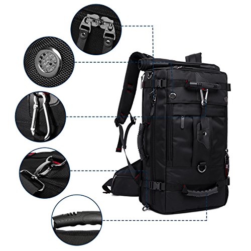 Key Features: - 100% Brand New, it's very durable laptop backpack, you will love it as soon as you get it. - There is a laptop sleeve inside the main pocket, it can hold most 17 inch laptop. - The lining of the bag is water resisted, so it's not easy to get wet. - This bag can be used as duffle/suitcase/briefcase. There is a handle on the side. - Two durable straps are in a hidden compartment to make this bag a backpack/rucksack/satchel. - A detachable shoulder strap can easily turn the backpack into a messenger Bag/crossbody bag/shoulder bag. - scientific and reasonable pockets design make your goods lay in the bag systematically. - It's a very good backpack for travel, hiking, camping, working, college, school and everyday using. What you can put in this backpack? - You can put 4-5 clothes, A4 books, 17" laptop, ipad, glasses, wallet, keys, earphone, power bank, camera, cell phone and document in the bag. How to maintain the backpack? - Wash it with clean water in ordinary temperature. - DO NOT wash it with hot water and alkaline detergent. - Hang to dry and store in ventilated place instead of sun exposure. - Wash Separately to avoid staining. Package includes: - 1 * Backpack and 1*Shoulder Strap About KAKA: KAKA is founded by a genuine group of the 80's and 90's generation.KAKA is all about easy-going lifestyle, freedom and good times. The bags are made classic, simply and old school. Most of them are made of cotton canvas and real leather, which adds to durability and awesomeness. KAKA's mission is to make you happy wearing its bags!Feature