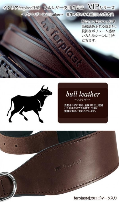 イタリアferplast社製高級ブルレザーを使用した革犬具「VIPシリーズ」のカラー。革ならではのシックで高級感あふれる風合いをお楽しみ頂けるワンランク上のアイテムです。 |