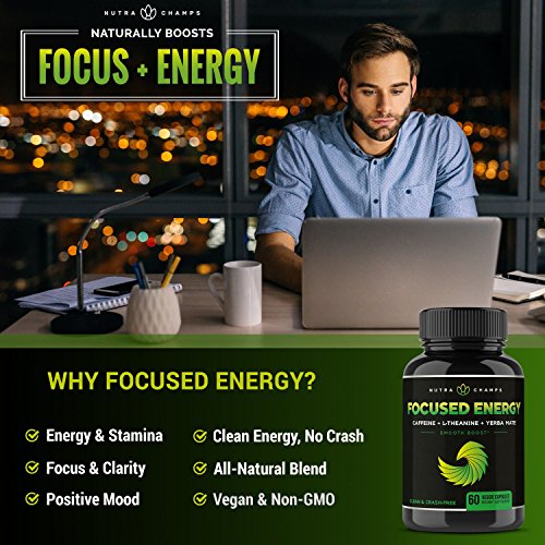 -. Feature : ★ SMOOTH & CLEAN BOOST, JITTER-FREE - Focused Energy delivers a clean flow of energy that tapers off slowly to prevent crash and fatigue. When used together, L-Theanine and caffeine create synergistic benefits which amplify and refine the effects that each other produces on its own. With Focused Energy, you'll enjoy a convenient and lasting energy boost without the trade-offs. Label design may vary slightly. / ★ AMP UP YOUR ENERGY & FOCUS - Looking for something to quickly ramp up your mental and physical performance? Focused Energy provides you with natural brain boosters that help you stay sharp and engaged throughout the day. Take your performance to the next level and elevate your day with three of nature's most trusted and reliable focus and energy enhancing nutrients. / ★ NATURE'S ENERGY TRIFECTA - Our journey to bring you a premium clean energy solution led us to 3 of nature's best focus and energy enhancing nutrients. From the depths of the South American rain forests to the peaks of the East Asian mountains, Focused Energy integrates Natural Caffeine from coffee beans, L-Theanine from green tea leaves, and Yerba Mate leaves to help you reach new heights and give you the mental and physical boost you need, whenever you need it. / ★ TRULY NATURAL ALTERNATIVE - So many of us turn to coffee when we need a boost. The challenge is that most coffee is brimming with sweeteners and comes with its own set of drawbacks. That's where we do things differently - Unlike coffee, which can cause jitters, hyperactivity, and an inevitable crash, Focused Energy is balanced and smooth, delivering a clean flow of focused energy any time you need it. Elevate your performance to new heights - without the hitches that come with a cup of joe. / ★ ENERGIZED GUARANTEE - Feel energized, or your money back - it's that simple. All of our products are backed by our lifetime guarantee - If for any reason you aren't completely thrilled, just let us know and we'll refund your entire purchase with no hassles. The NutraChamps Guarantee is a sign of how confident we are in the superior quality and effectiveness of our products. Order with confidence - we've got you covered.
