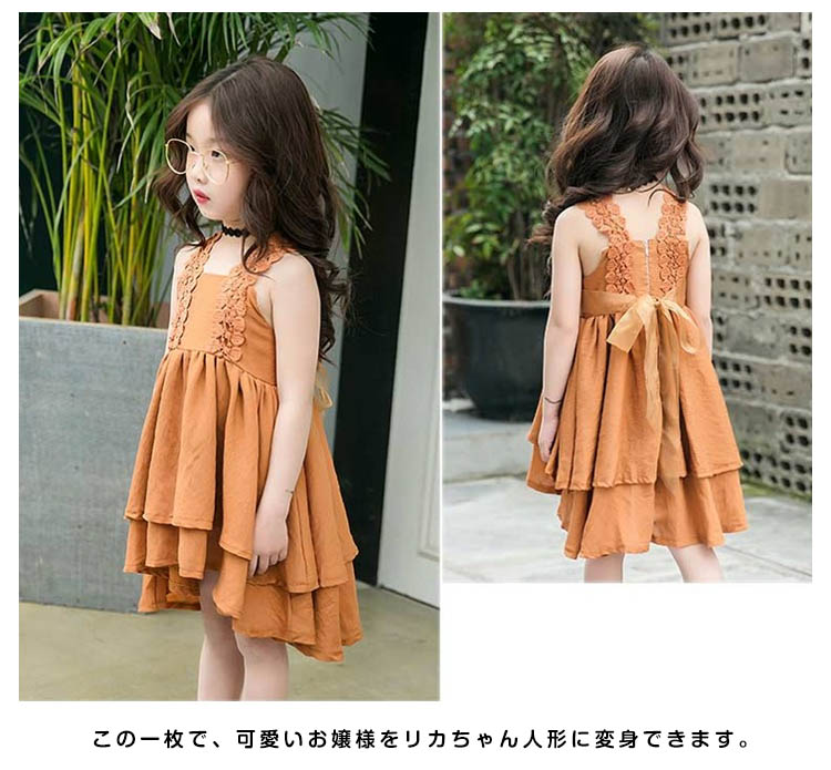| お洒落でスイートなキャミソールワンピース。優美なレース肩紐は飾りになってプリンセス雰囲気が仕上げています。スクエアネックのデザインは夏にピタッリ、シンプルで可愛いです。スカート部は裾のアシンメトリー二枚重ねて、ふんわりとしてとても活発に見えます。この一枚で、可愛いお嬢様をリカちゃん人形に変身できます。 | |