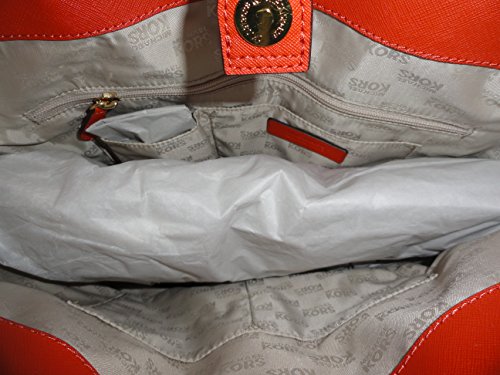 -. Brand : -. Color : Burnt Orange -. Department : womens -. EAN : 0888235514475 -. Feature : Burnt orange saffiano finished leather with golden tone hardware / Lined interior with zippered pocket and 4 open slip pockets / Magnetic snap closure; logo on the front with an open slip pocket on the back / Dual leather straps with a drop of about 9 inches / Measures 13.5" (L) x 14" (H) x 3.5" (W) -. Model : 35H3GTVT7T -. MPN : 888235514475 -. PackageQuantity : 1 -. PartNumber : 888235514475 -. ProductGroup : Apparel -. ProductTypeName : LAGE -. Size : Large -. Title : Jet Set Large Saffiano N/S Tote - Burnt Orange -. UPC : 888235514475