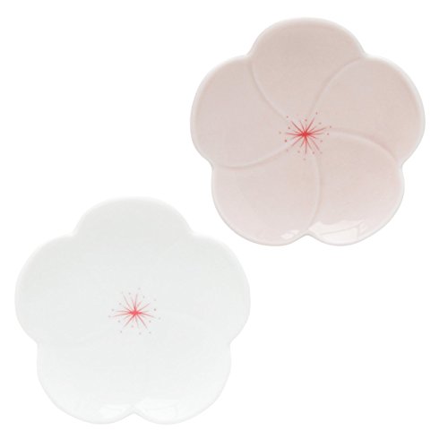 원본상품명: 有田? 赤花? 捻梅形小皿 紅白2個セット(薄?釉/白) 9cm 幸?窯 krk0696