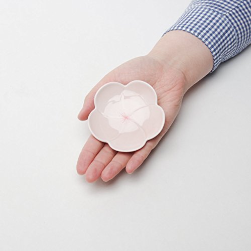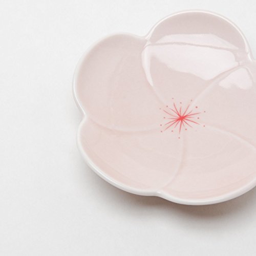 송화당 아리타산 도자기 적꽃실 염매형작은 접시 홍백2 개세트(박벚꽃 유약/흰색) 9cm 행악가마 krk0696