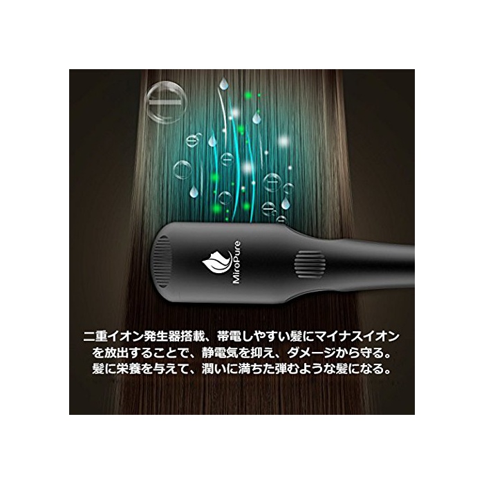 MiroPure 더블 마이너스 이온 스트레이트 브러시 아이런 온도 록 기능 정전기 방지 스피디 피로 해제 화상처 방지 내열 수봉투 첨부【24월 보증기간】 …