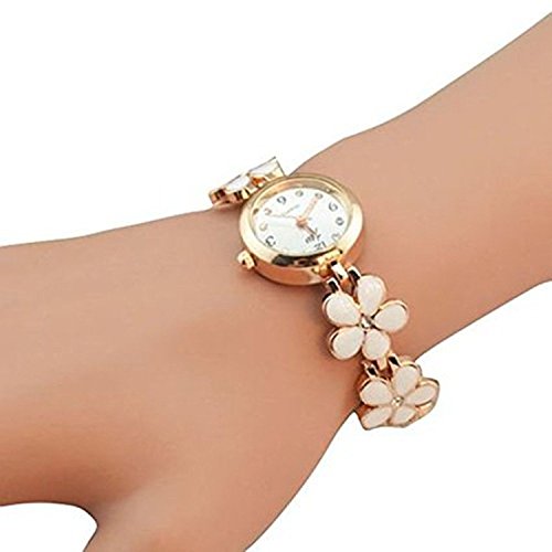 -. Title : Nicedeco - white ,Fashion Daisies Flower Rose Gold Bracelet Wrist Watch Women Girl Gift