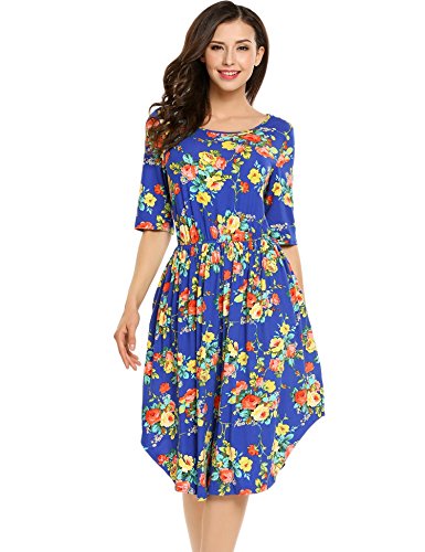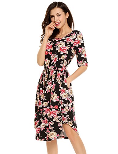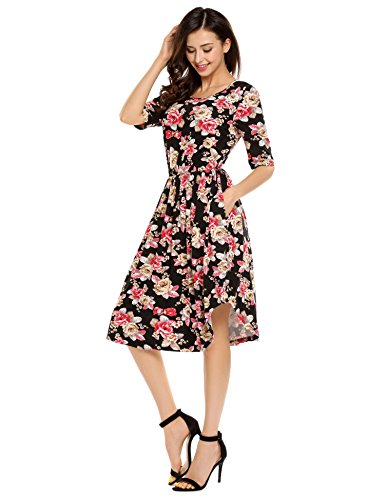 Design:This Vintage flower print dress is round neck,half sleeve,high waist,and irregular hem design.A little flare.Very fashion